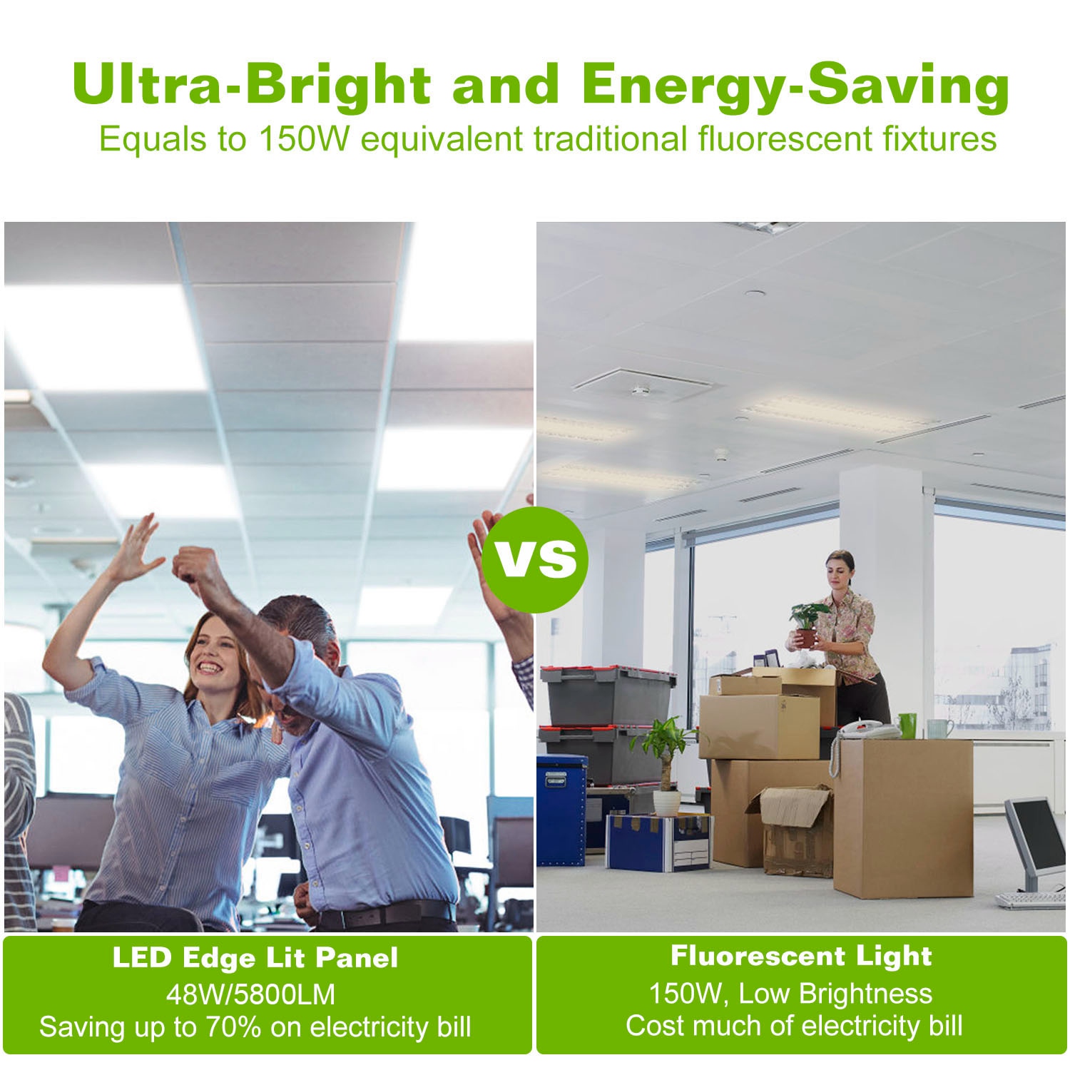 - **Ultra-Bright and Energy-Saving*:Built-in 48pcs SMD4014 LEDs(0.2W/PC),our LED panel light offers total 48W excellent lighting effect equivalent to 150W traditional fluorescent fixtures,saves up to 70% on electricity bill.
