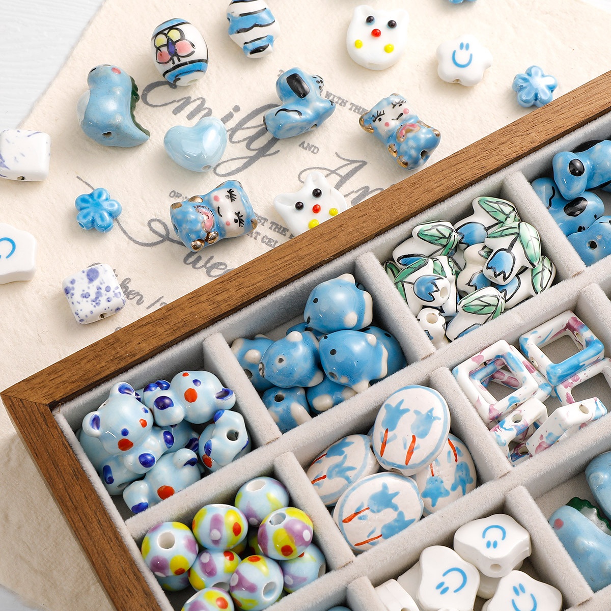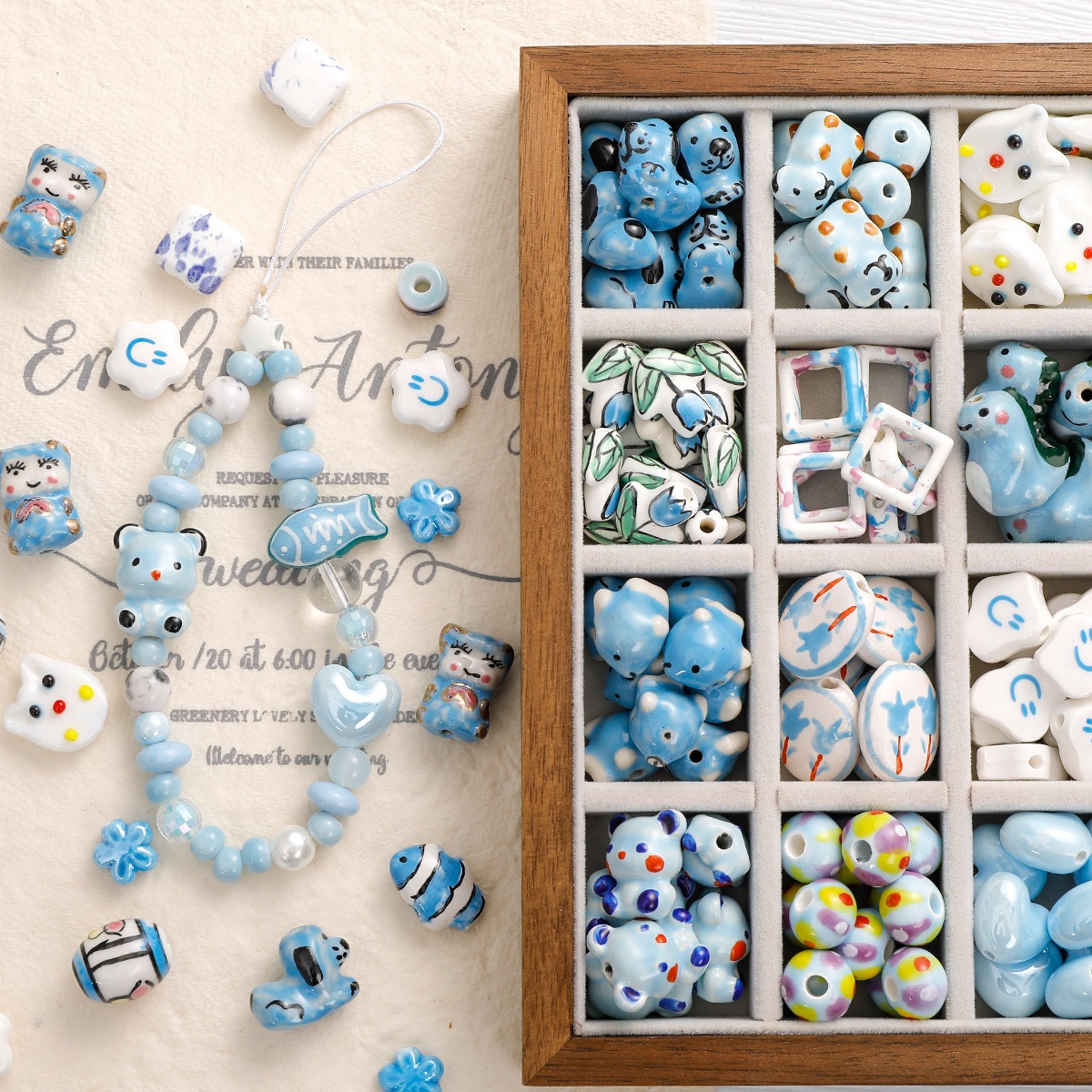 Color: n0211 blue cute dog, n0220 blue cute little dinosaur, n0229 blue clownfish, n0236 Blue Bear, n0246 Blue A style Bear, sl0189 Bloom hollow heart, sl1189 cloud A,sl1190 cloud B,sl1204 graffiti beads, sl1304 cat, sl2105 light blue five petal flower, sl2108 dark blue five petal flower, sl2240 blue gasket, sl2241 light blue flower, sl2243 blue Showa round beads, sl2249 flowering hollow block, sl2250 Showa Oval, sl2255 blue round cake, sl2256 flowering squares, sl2261 Showa butterfly, sl2266 lucky cat, sl2267 lamb, sl3171 tulip, sl3173 round tulip, sl3174 fish, sl3177 fat love