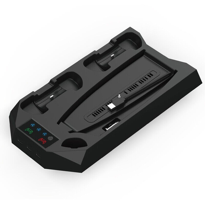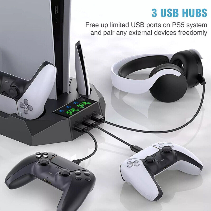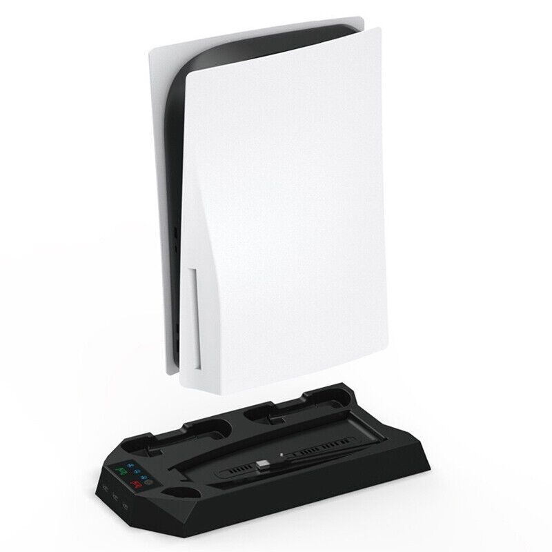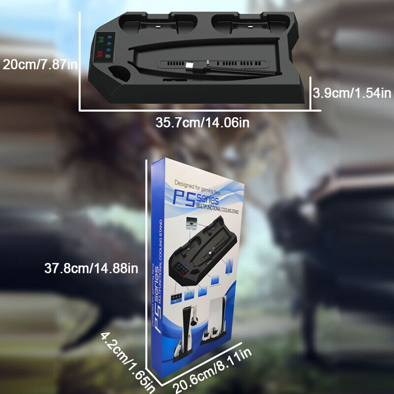 3 ADJUSTABLE FAN SPEEDS: The ps5 cooling station has 3 speeds(Low,Medium,High), You can change the fan speeds to 3 different settings with different changing lights to let you know what speed the ps5 cooling fan you are on. All the heated air will be blown by the cooling stand from the bottom of ps5 console, and keep the system cool while playing games